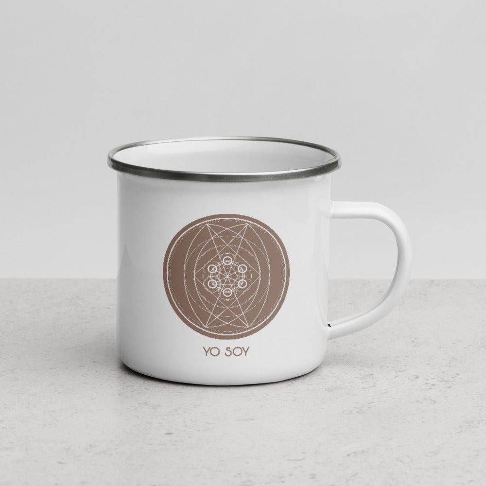Apportez votre propre tasse en émail avec le rappel graphique de votre essence.